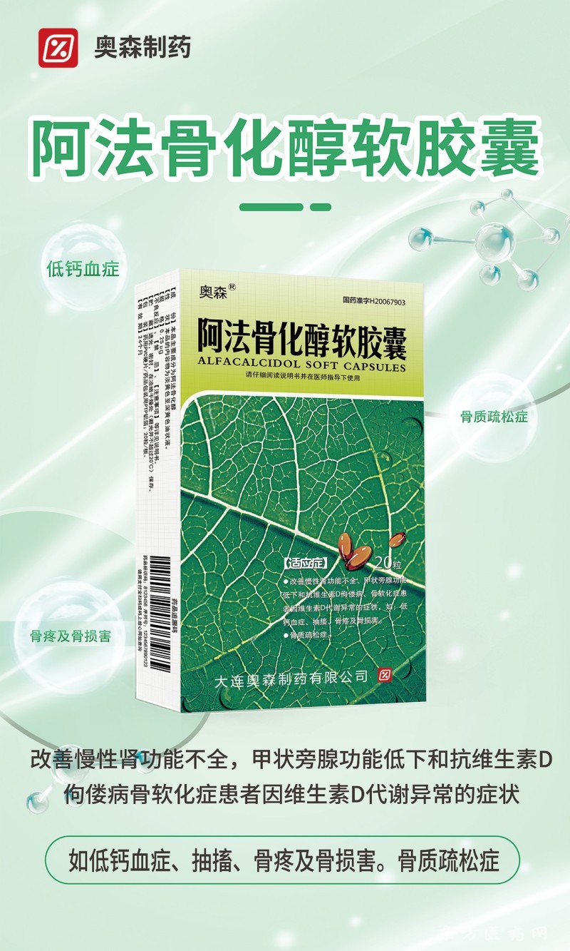 功能主治 | 1.改善慢性肾功能不全、甲状旁腺功能低下和抗维生素D佝偻病、骨软化症患者因维生素D代谢异常的症状,如:低钙血症、抽搐、骨疼及骨损害。2.骨质疏松症。 |